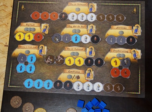 orleans2Y bueno, no es tan malo como piensan. En Orléans tienes fichas, las cuales representan tus trabajadores, los que podrás intercambiarlos por otros trabajadores y por recursos que te dejarán ser el más adinerado comerciante en Francia. Orléans es una gran combinación de mecánicas, pero la que nos interesa es la mecánica de la bolsa.