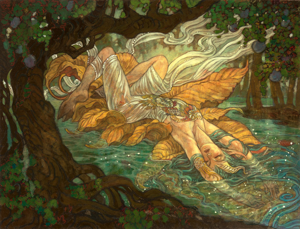 El trabajo de Guay es impresionante primero por su representación de personajes oníricos de increible belleza. Los colores pastel complementa muy bien el ambiente de “sueño” que exuda de las ilustraciones. La atención al detalle te obliga a mirar darle una mirada más allá de si es una criatura 2/2 con trample.