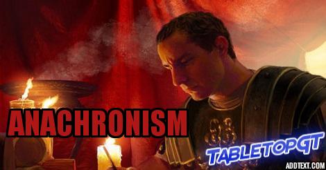 Anachronism fue lanzando en el 2005 por la compañía Triking Games auspiciada por History Channel. En él, de 2 a 4 jugadores pelean con figuras históricas como si fueran gladiadores, hasta que sólo uno quede en pie. Cada jugador puede elegir cuatro cartas de Soporte que representan armas, armaduras y deidades las cuales ayudan al personaje a ganar la batalla. Normalmente se juega en una cuadricula de 4×4, aunque hay cuadrículas más grandes pero estas se rigen por reglas especiales y son para que jueguen más de 4.