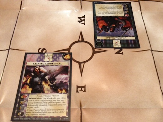 ¿Cuál es el atractivo del juego? para mi es la rapidez con que se juega. Las partidas duran un máximo de 12 minutos y están limitadas a 5 turnos. Por otro lado, es sencillo aprenderlo y complejo dominarlo; como todo juego coleccionable en donde se pueden realizar una gran cantidad de combinaciones. También puedes resolver esas dudas existenciales sobre quien ganaría una lucha entre Leonidas y Vlad el empalador. Por ultimo la parte coleccionable que como mencione anteriormente lo considero un proto LCG (Living Card Game) ya que los “boosters” eran fijos. Estos contenían un personaje principal, sus cuatro cartas de apoyo. Y una ventaja más es que como es un juego que ya no se publica, el precio de los sets completos es muy bajo (Recomiendo Miniature Market).