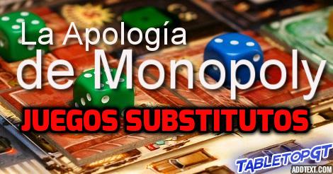 Debo adelantar que estoy totalmente consiente de que ya hay varias listas las cuales hablan de juegos que substituyen a Monopoly como este, o este otro. Pero creo que la forma como fue estructurada por el Dr. Nicholson es la mejor puesto que nos enseña cuáles son las razones por las cuales les gusta a la gente: Hay gente que le gusta intercambiar productos, hay gente que le gusta tirar un dado y moverse, hay gente que le gusta arruinar a sus amigos, y otros…