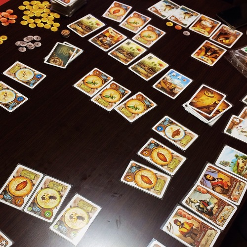 Lo interesante de este juego es que no es un juego de negociación sino sólo uno de comercio, para las personas que no les agrada pedir descuento o que les ofrezcan un mejor negocio. Cada ronda el encargado de la fase de comercio (alias el primer jugador) tiene que decir cuántos productos se venderán durante la ronda. Los jugadores entonces tienen que poner todos esa cantidad. Posteriormente, uno a uno tiene que cambiar un producto 1 a 1 por otro que esta en la mesa, inclusive con un mercado central que es parte del set up. Al intercambiar producto lo que quieres es juntar sets de números iguales o todos los números diferentes que puedas.