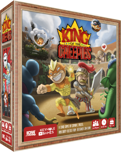 Este es un juego diseñado por el diseñador nuevo Jon Cohn el cual es propietario de la editorial Keyhole Games. Esta, se unirá a IDW para sacar King of the Creepies en junio del 2017. El juego se trata de que tienes que ensamblar un grupo de Creepies y darles armamento para que peleen por ti en una arena contra otros Creepies. En el juego cada ronda tienes la oportunidad de apostar a tu equipo, si ganas… ganarás plata. Esta plata te puede servir para comprar más equipo y armamento para darle mejor oportunidad a tu equipo de ganar en la próxima face del juego. Suena interesante, veremos cómo es.