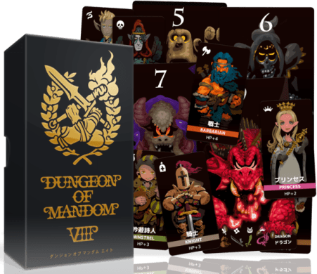 Érase una vez un juego que se llamaba el calabozo de la hombría… y estaba publicado en Japón… y ese juego se trataba de ver quién era el más macho guerrero que entrara a un calabozo con cada vez menos armas. El héroe (o víctima dependiendo de en qué momento lo encuentren) se jacta de qué tan pocas armas puede llevar consigo para derrotar a todos los monstruos dentro de la mazmorra. Y bueno, tan bien como suena ese juego, Iello compró los derechos y lo volvió a publicar, esta vez con el nombre más PC de Welcome to the Dungeon y como les fue bien publicaron una secuela llamada Welcome Back to the Dungeon (el cual fue co diseñado por Antoine Bauza). Ahora Oink Games anuncia que pondrá todo el contenido que ha sacado en una sola caja: Dungeon of Mandom VIII, esta incluirá el juego original así como las 2 versiones publicadas por Iello.