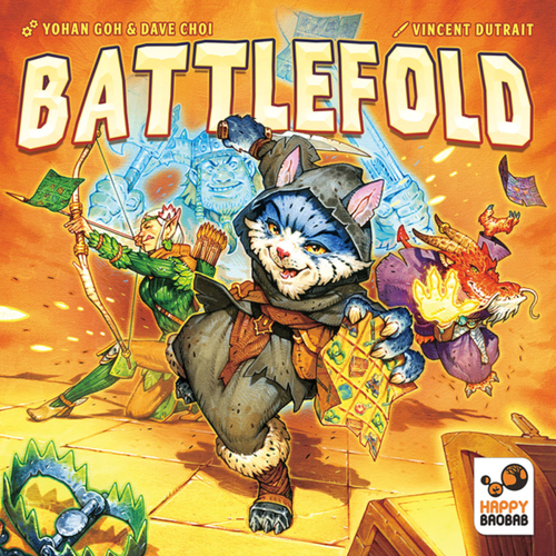 …pero! hehe… como los editores vieron que podían hacer más plata… eh… no digo, los editores vieron que la respuesta del mercado hacia este nuevo producto fue buena, decidieron convertir la mecánica de “doblar” la base para toda una serie de juegos diferentes. El primero en esta serie es Battlefold. En este juego cada jugador toma el rol de un guerrero, arquero, asesino o mago (sólo para variar) Cada quién tiene su propia servilleta con diferentes iconos que son únicos para cada rol. Al igual que Fold-it original, a cada turno se revela una carta y todos los jugadores luchan por doblar su servilleta para sólo mostrar los iconos que ahí aparecen. En este caso, los jugadores le apuntan a eliminar a los otros porque el último que queda vivo es el ganador. Salvo que… eh… para todos aquellos que se quejan de los juegos de eliminación… pues habrá “Reglas de fantasma” que cuando te mueres… no te mueres realmente: sigues luchando, sólo que ahora tienes que obtener puntos espirituales o algo así. Hmmm… eso me suena a que todo mundo obtiene trofeos…. y tu ten tu trofeo y tu… ten tu trofeo… trofeos para todos!