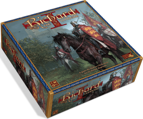 Este es el más reciente juego de CMON.  En Richard the Lionheart tu y tus amigos tendrán que decidir de qué lado están o te unes al lado de Robin Hood o John Lackland.  Una vez decidido a quién te unes, tendrás que viajar por toda Inglaterra haciendo puntos de prestigio pues cuando regrese el rey Richard, quién tenga más puntos gana.  El juego traerá una montaña de minis (bueno, en realidad sólo son 16, pero se mira como si fuera una montaña) que es por lo que CMON es ya ampliamente conocido.  Esperemos que este si realmente sea un juego original, no Blood Rage disfrazado de Japón con esteroides (si! te estoy viendo a vos Rising Sun).