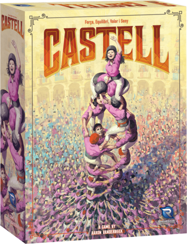 Este es el tercer juego en una trilogía diseñada por Aaron Vanderbeek que incluye Castellers y Castelle! En esta versión de la trilogía, los jugadores no sólo compiten por hacer el castelle más grande (un castelle es una torre humana) sino que tienen que llevar a su equipo por todo un año de entrenamiento, tours, competiciones y más. Castell se mira bastante interesante, es un juego para 2 a 4 jugadores con un tiempo de juego de 90 mins.